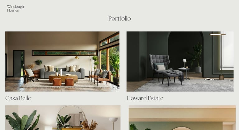 Modern, portfolio-driven homepage highlighting interior design projects, crafted to attract premium Austin clients.